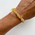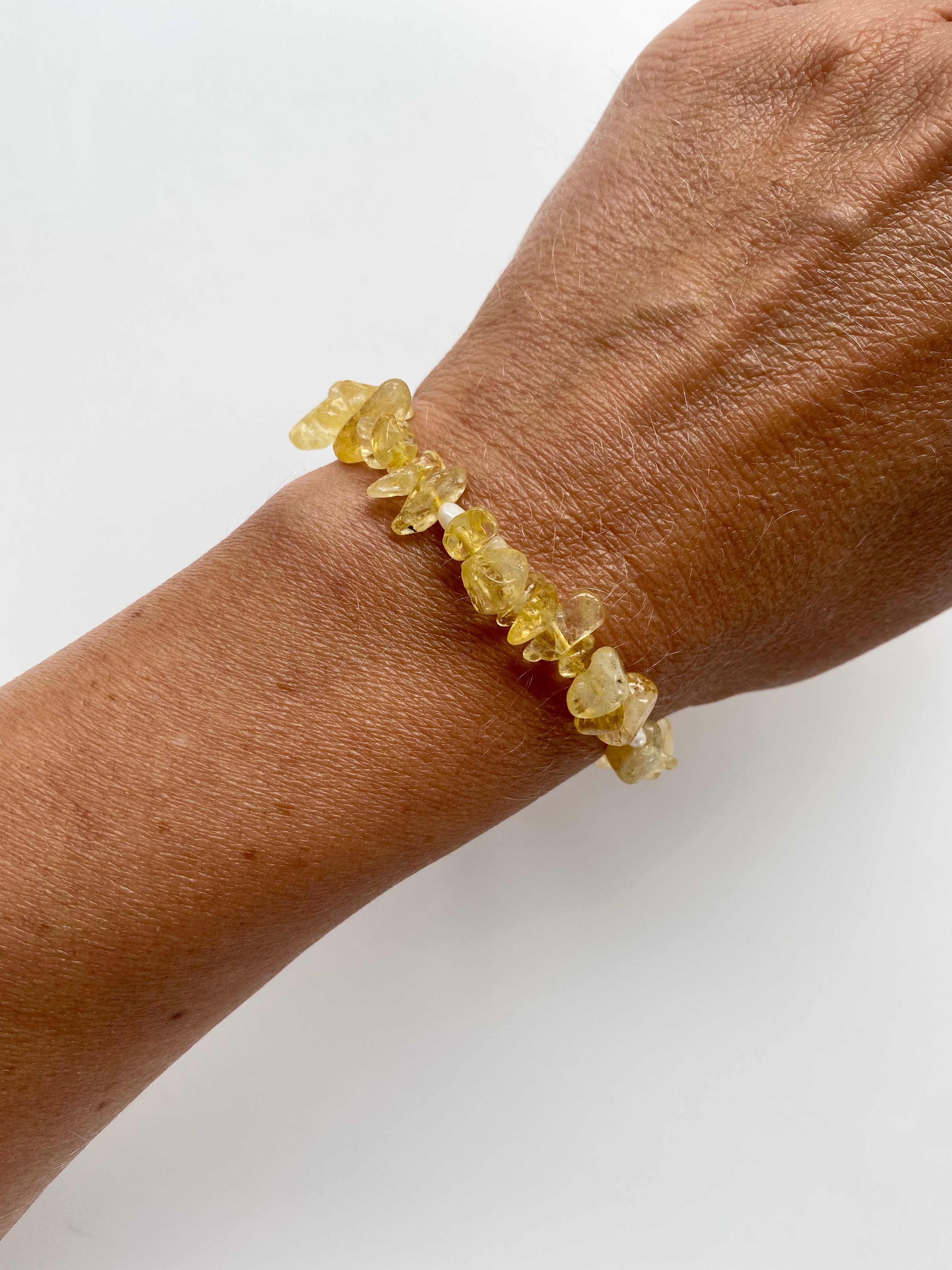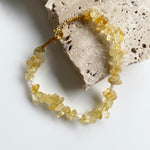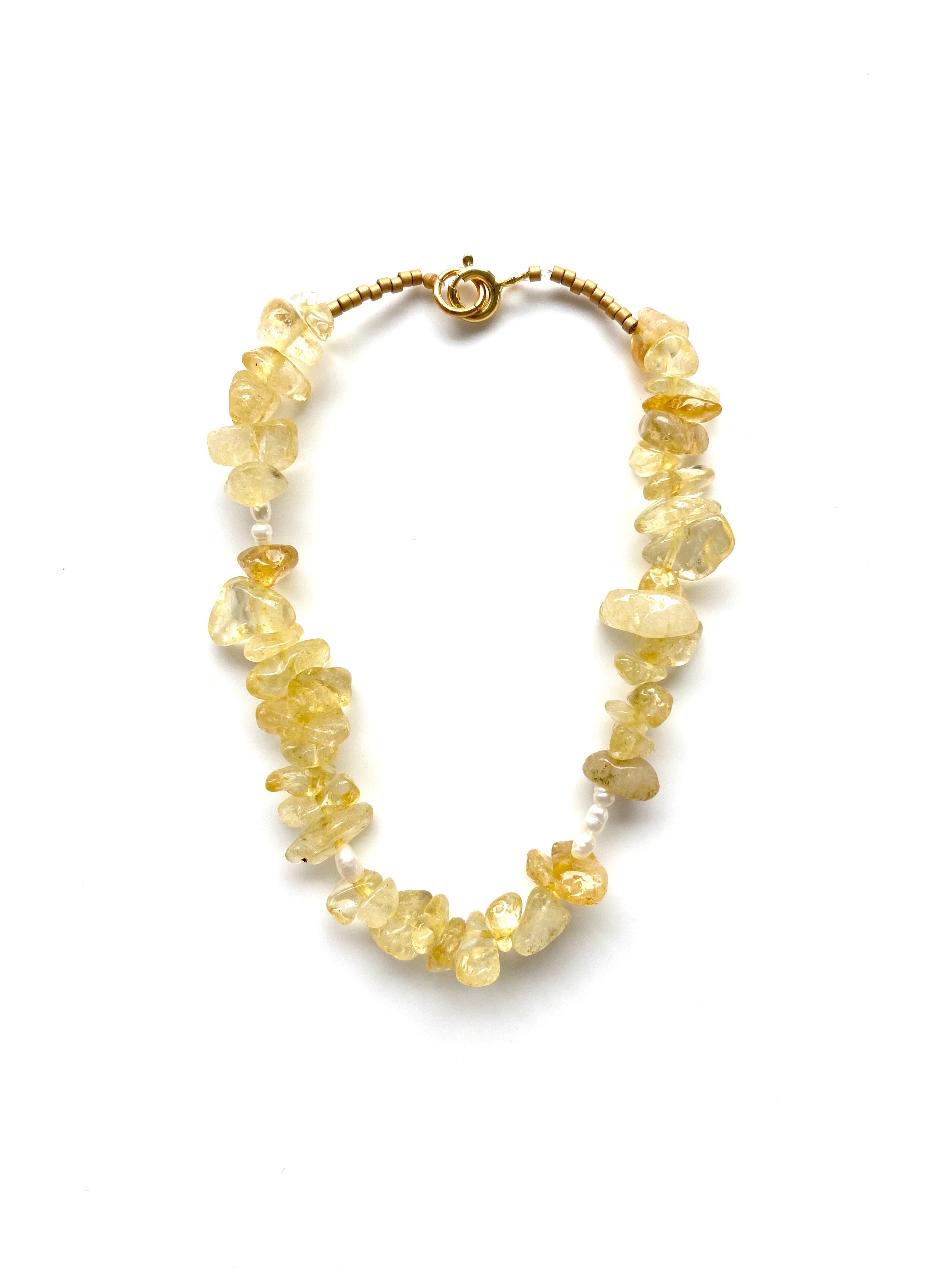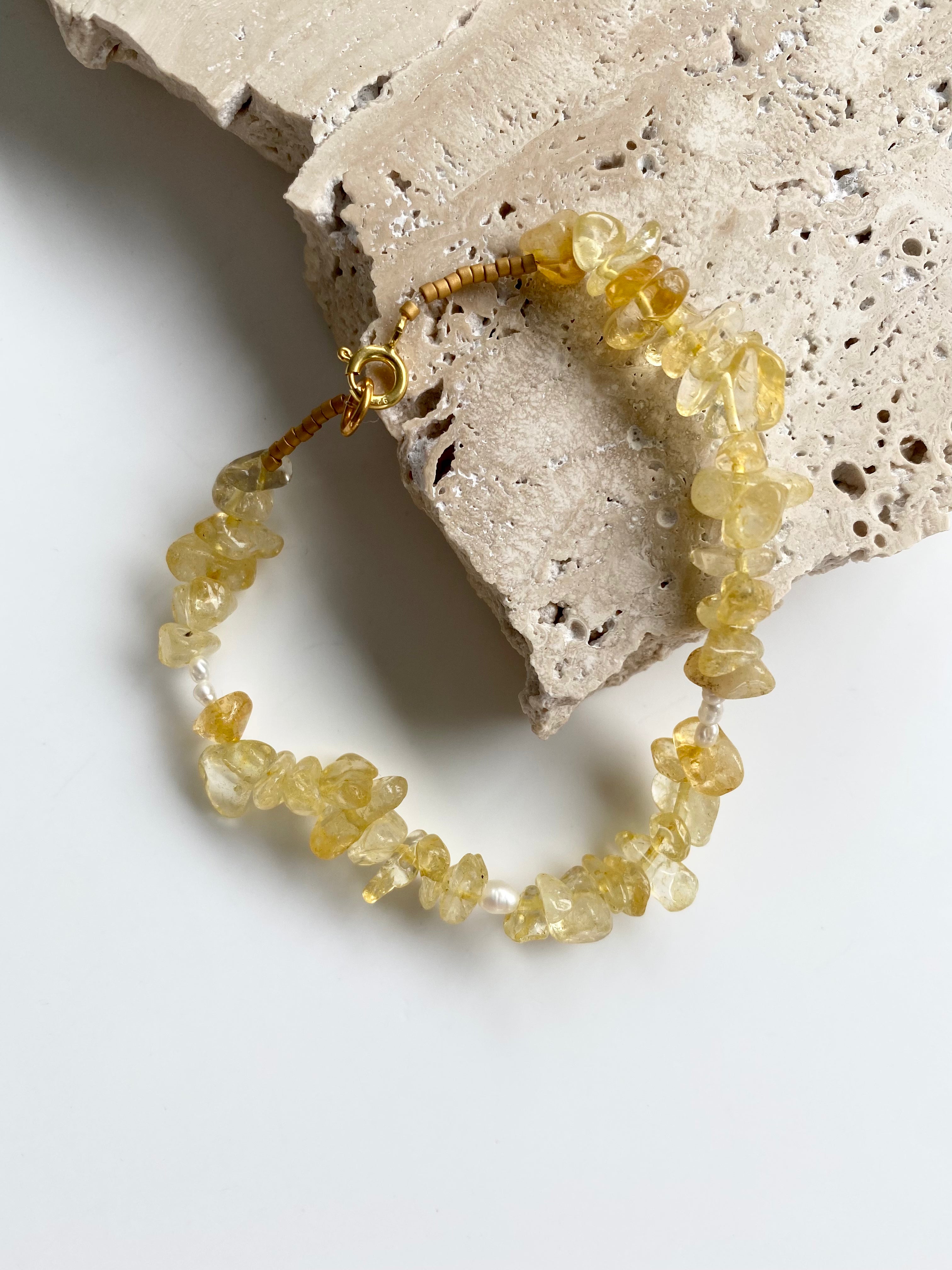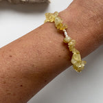 This unique bracelet is made in the semi precious stone Citrine, which have the most amazing combination of yellow shaded colours, combined with a few small baroque freshwater pearls.