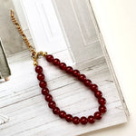 This colourful dark red bracelet is crafted with unique carnelian stones beads to give you an exclusive look. The bracelet is the perfect accessory for any look. Crafted from superior materials, it is adjustable to fit any wrist size.