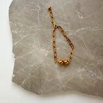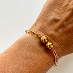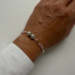 This distinctive bracelet features a bold oblong anchor chain paired with two chunky metal balls and a smaller ball at the end for a refined touch. It's an ideal statement piece for any occasion.