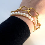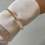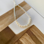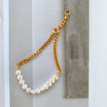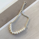 This unique bracelet is a combination of classic baroque pearls and a modern 3mm panzer chain - designed with love for a playful mind.
