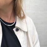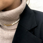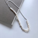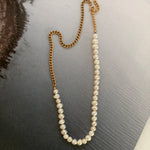 This unique necklace is a combination of classic baroque pearls and a modern 3 mm panzer chain - designed with love for a playful mind.
